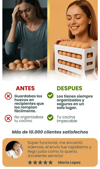 Descubre, el organizador que ahorra espacio, protege tus huevos y te da acceso rápido con un solo movimiento.