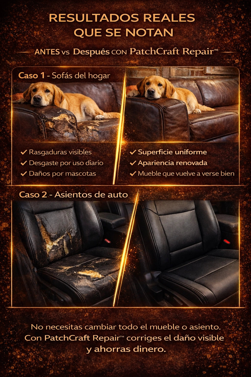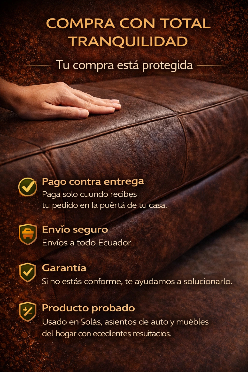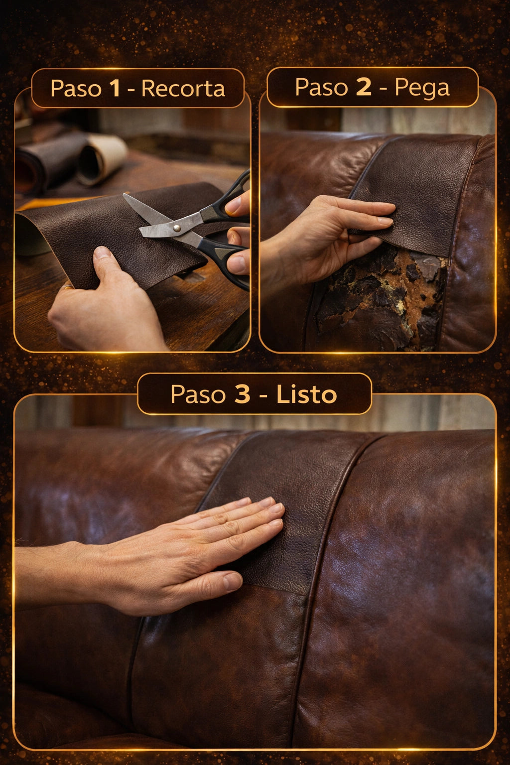 Mis sillas de cuero estaban feas y desgastadas en 10 minutos quedaron perfectas y nadie nota el daño anterior es muy bueno