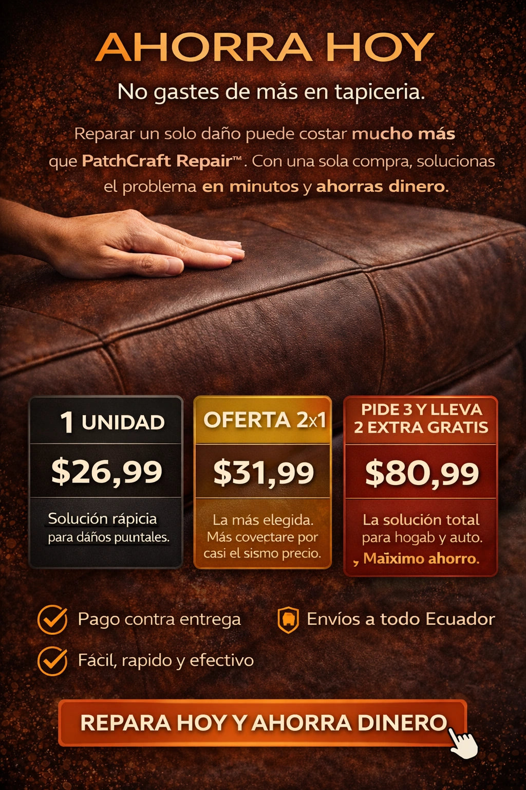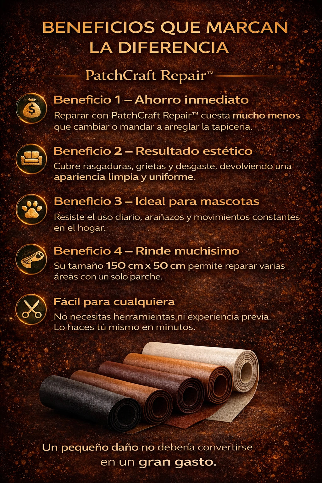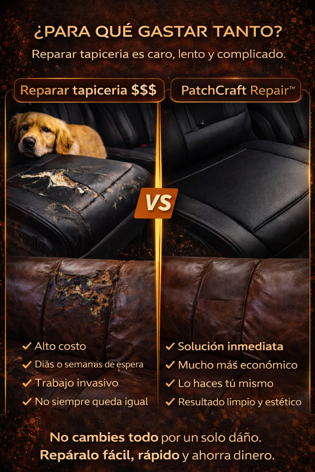 Mis sillas de cuero estaban feas y desgastadas en 10 minutos quedaron perfectas y nadie nota el daño anterior es muy bueno
